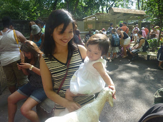 Yes, no interest in the real goat, but give her a goat statue and she's all over it. Maybe she's just not at the right age. Even in the Polar Bear exhibit Mimi was far more interested in getting the attention of the 3 year old boy next to her than the one-ton ursine paddling through the water in front of her. Well, I suppose everyone has preferences. Even those who are only 13 months old.