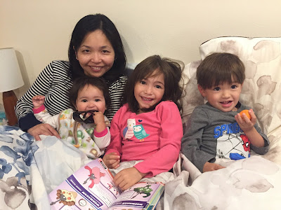 It was a rare, wonderful, and much deserved night out, but the best surprise was still waiting for us. As we neared home around ten, we received word that Mari had gone to sleep at her regular time, but Mimi and Kuri had just been put down. They obviously heard us opening the door, because seconds later we heard the frantic patter of small feet and were quickly smothered in hugs. Getting out just the two of us is tremendously special not only for the precious time we can spend together, but also for how well it reminds us of what we have here at home. All-in-all, I think Sumie had a wonderful birthday, and one that was a big step up from that first we shared at Lyons in Davis all those years ago. But like that one, I hope this last one leads to many more.