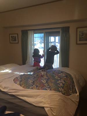 We'd be spending most of our time in Tokyo with Ojichan and Obachan (Grandma and Grandpa) at their apartment in Shinagawa, Tokyo. This was just fine with the kids as their room had a window overlooking a number of Japanese rail lines, including one for the Shinkansen (bullet train). Every few minutes we'd hear Kuri yell out, "Papa, Shinkansen!!!" or "Papa, Yamanote! It's running express. Yes, it is."